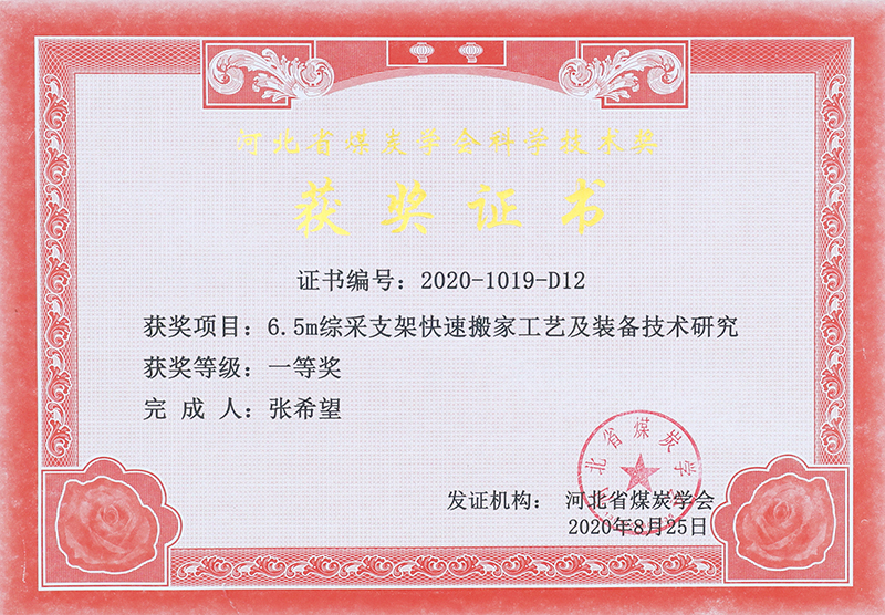 Science and Technology Awards-1-Hebei Coal Society Science and Technology Award First Prize-2022.8.25